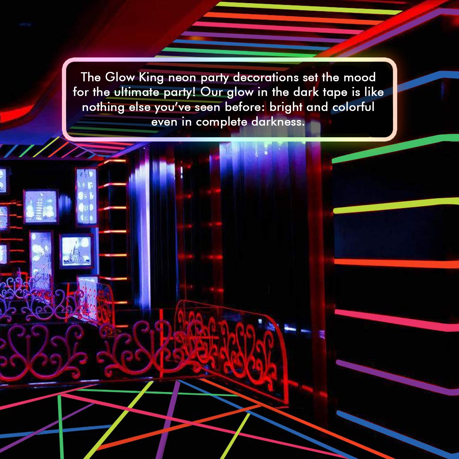 Blacklight (UV) lighting causes fluorescent materials to glow brightly in the dark. Our glow essentials are designed to react under UV light, creating a vibrant neon effect that instantly transforms your space.